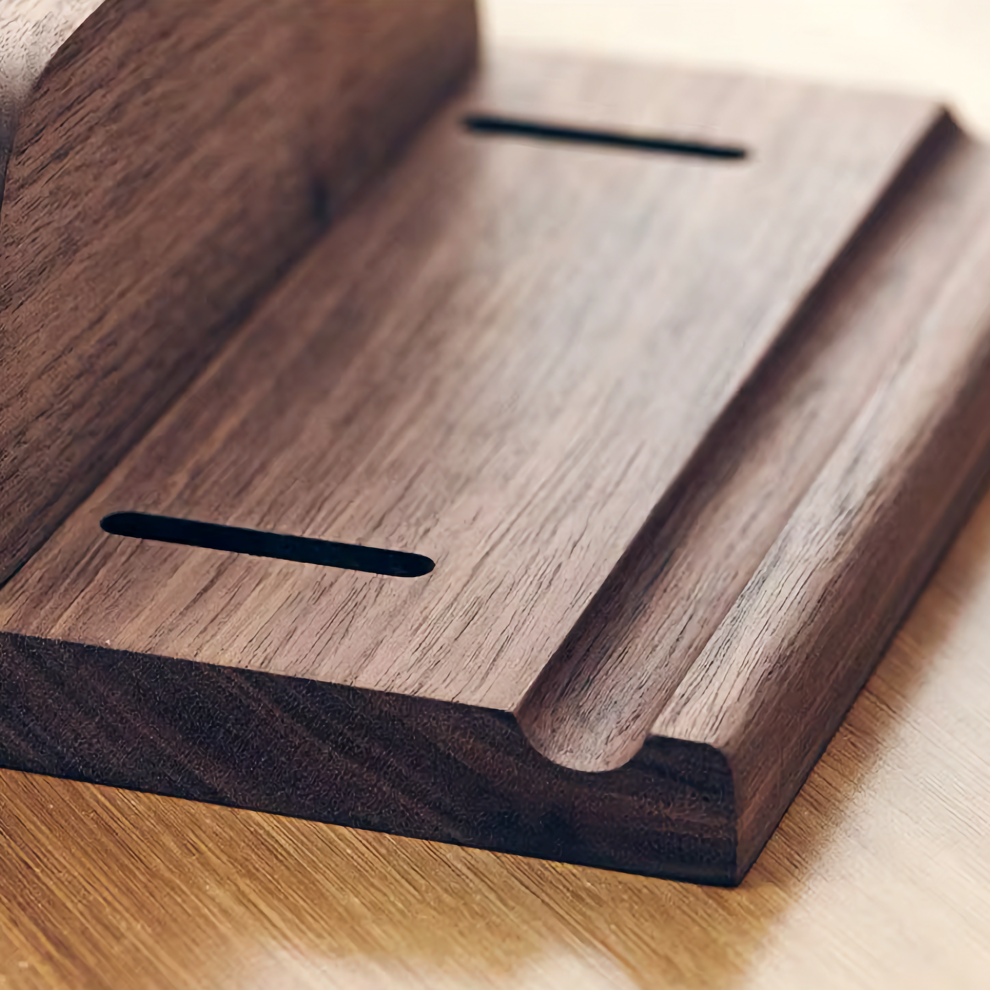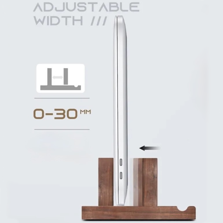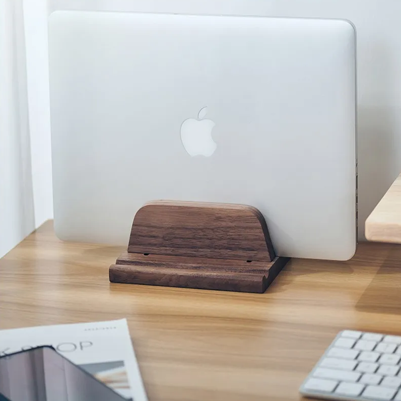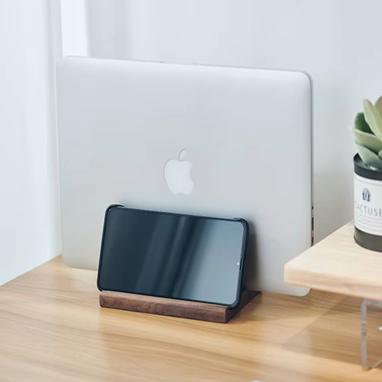 This elegant Walnut Wood Laptop Holder is a third-party accessory designed to fit most laptops up to 30mm thick. Crafted from high-quality walnut wood, it offers both durability and style, making it a perfect addition to any workspace. The holder also features an additional slot for your phone or tablet, providing a convenient spot to lean your devices while keeping everything organized. Its sleek design ensures a tidy, functional setup without compromising on aesthetics.